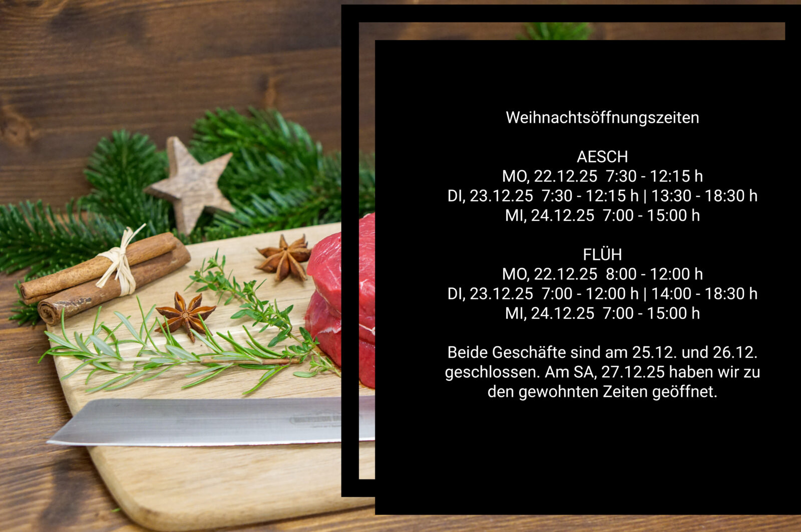 Von Montag, 27.2.2023 bis Montag 6.3.2023 bleiben unsere Metzgereien in Aesch und Flüh geschlossen.